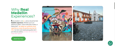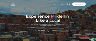 Creación del Sitio Web de Punta a Punta: Diseñé y desarrollé el sitio web realmedellinexperiences.com en su totalidad. Me encargué de la arquitectura de la información, el diseño de la experiencia de usuario (UX), la interfaz visual (UI) y, crucialmente, la redacción persuasiva de todo el contenido y las descripciones de los tours en inglés, asegurando que el mensaje fuera claro y atractivo para un público extranjero.
